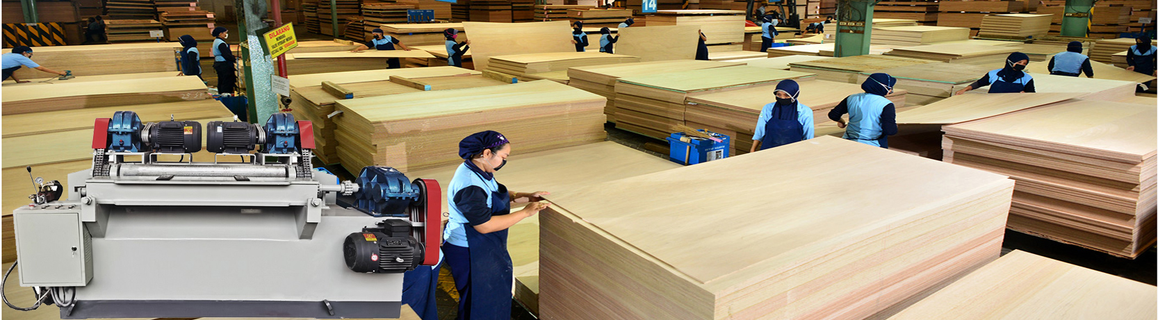 Log debarker Peeling machine Veneer dryer Hot press Cold press Glue spreader Veneer composer Trimming saw Putty machine Sanding machine